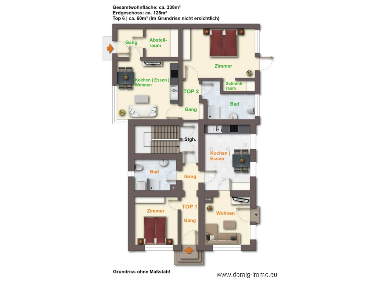 EG | Top 2 | ca. 63m² | derzeit vermietet 1.OG | Top 3 | ca. 62m² | derzeit vermietet 1.OG | Top 4 | ca. 63m² | derzeit vermietet DG | Top 5 | ca. 88m² | derzeit vermietet EG | Top 6 | ca. 60m² | derzeit vermietet Haus | ca. 129m² | derzeit vermietet Informationen zu den Mieteinnahmen übermitteln wir Ihnen auf Anfrage gerne. |