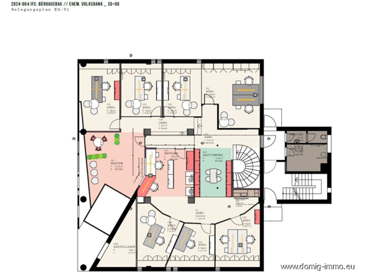 Das Erdgeschoss verfügt über einen hellen Eingangsbereich mit verglasten Schiebetüren sowie eine offene Lobby. Das imposante Stiegenhaus führt Sie in das Obergeschoss, welches ebenso durch helle, einladende Räumlichkeiten überzeugt und über eine Vielzahl an Beratungsräumen verfügt, die individuell genutzt werden können.