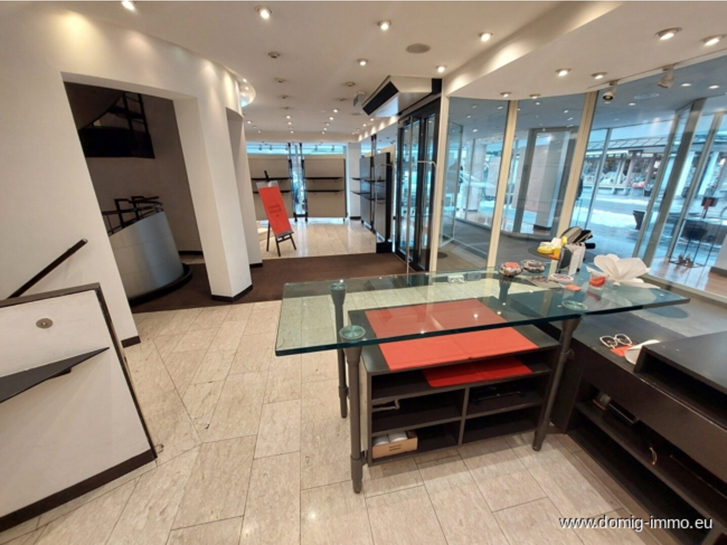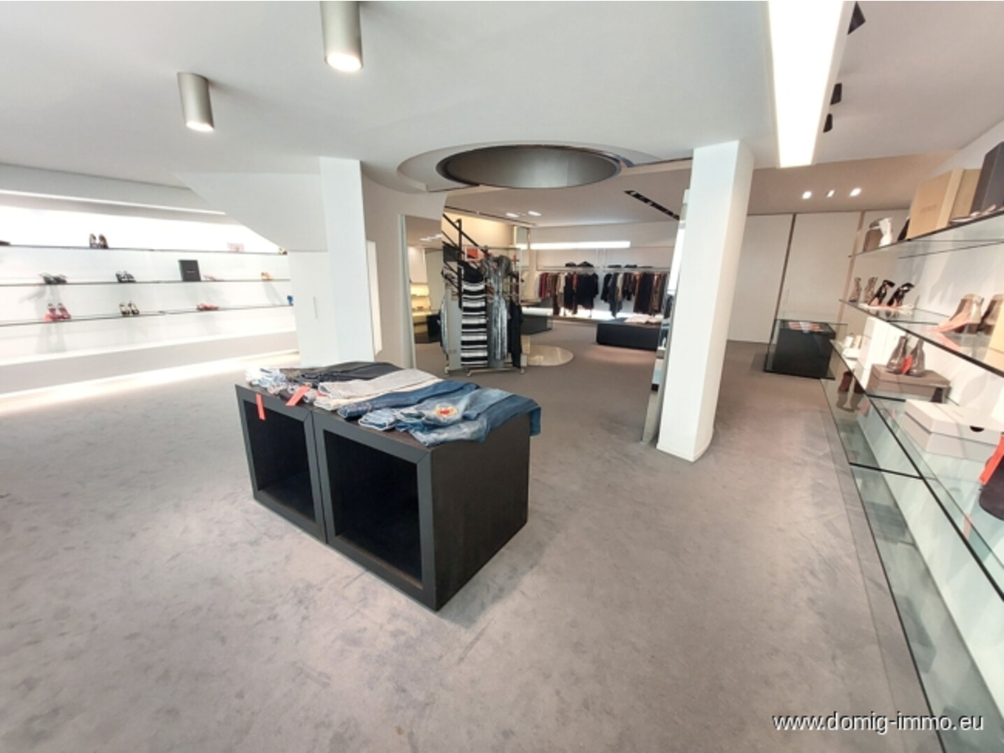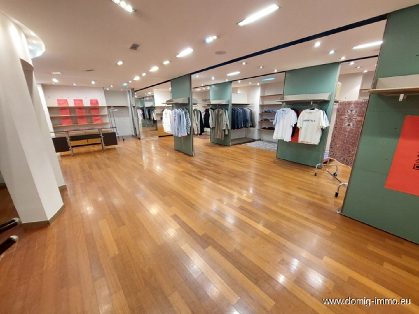 Ein Highlight ist die großzügige, umlaufende Schaufensterfront, die das Geschäft auf zwei Seiten spektakulär präsentiert. Ein zusätzlicher Durchgang mit Präsentationsfläche ermöglicht kreative Wareninszenierungen und lenkt Kundenströme optimal.