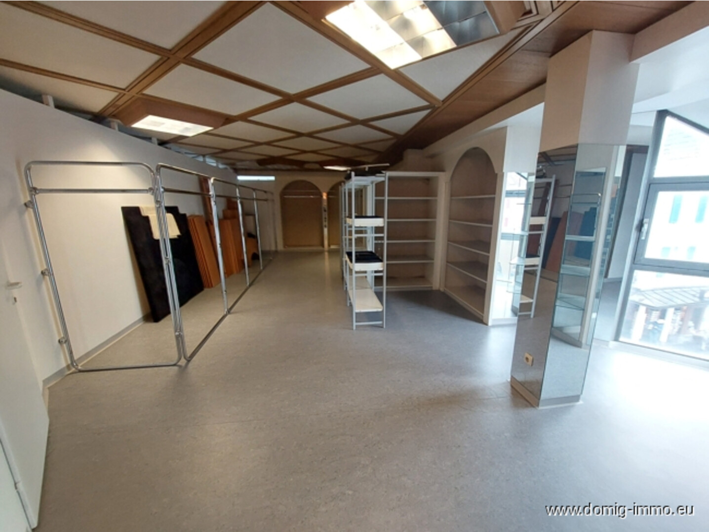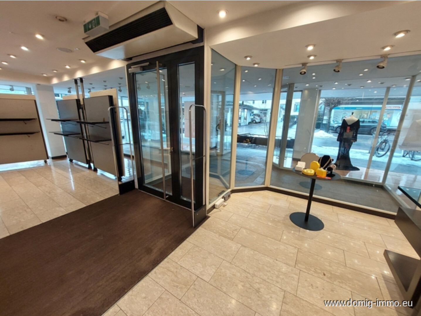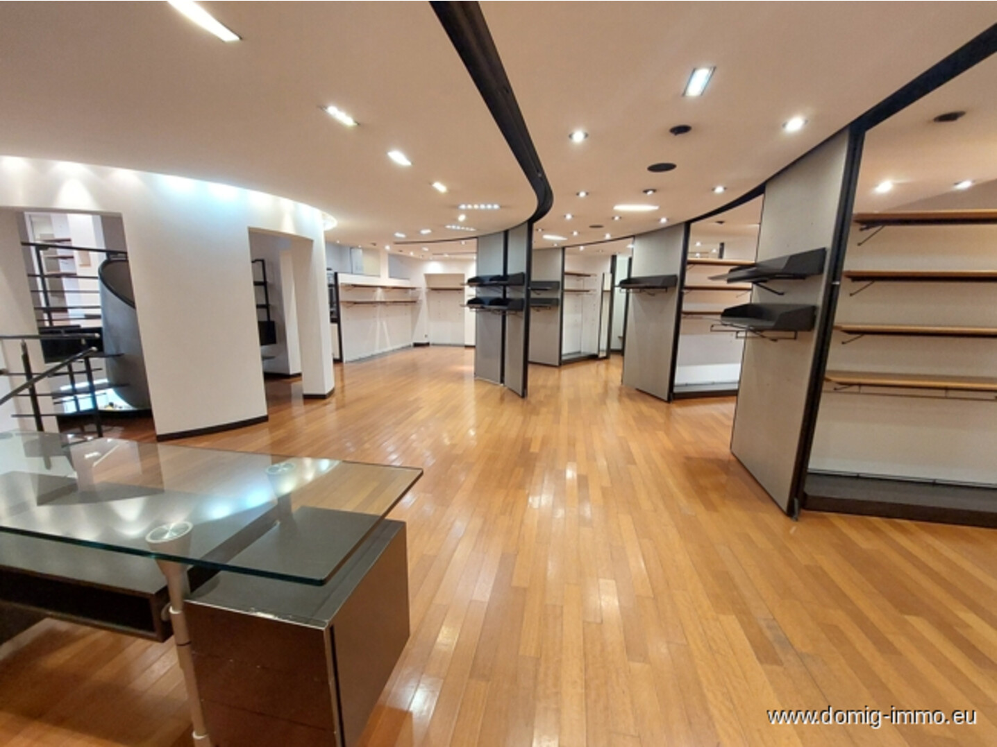 Ein Highlight ist die großzügige, umlaufende Schaufensterfront, die das Geschäft auf zwei Seiten spektakulär präsentiert. Ein zusätzlicher Durchgang mit Präsentationsfläche ermöglicht kreative Wareninszenierungen und lenkt Kundenströme optimal.