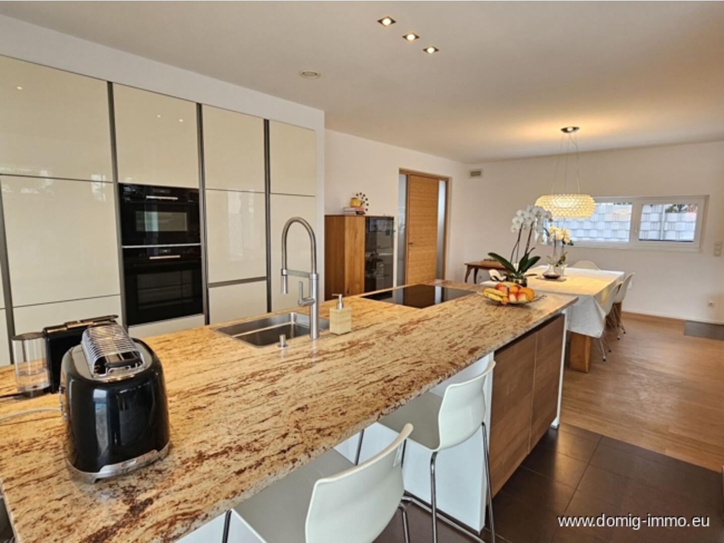 Herzstück des Hauses ist der großzügige Kochen-Essen-Wohnen-Bereich, der Offenheit und Eleganz miteinander verbindet und ideale Voraussetzungen für geselliges Beisammensein sowie entspannte Familienabende bietet. Große Fensterflächen sorgen für viel Tageslicht und schaffen fließende Übergänge zwischen Innen- und Außenbereich. Die hochwertige Ausstattung unterstreicht den modernen Charakter des Hauses und verleiht jedem Raum eine exklusive Note.