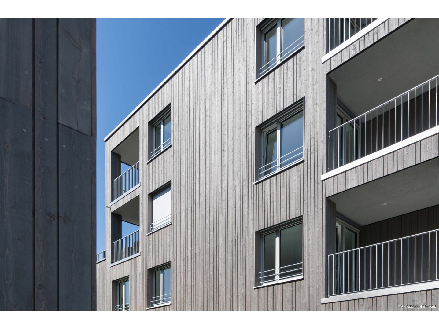 Das Projekt umfasst insgesamt 19 Einheiten, aufgeteilt auf zwei Baukörper, die im Untergeschoss miteinander verbunden sind. Die Bauweise kombiniert massive Elemente mit Holzbau und sorgt so für ein angenehmes Wohnklima sowie eine nachhaltige Ausführung.